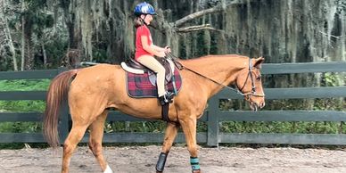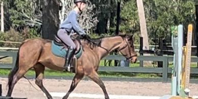 15.1 H. 5 yr old Quarter Horse Gelding is a new addition to our program . He is quickly becoming a favorite with his smooth gaits and comfortable jumps.